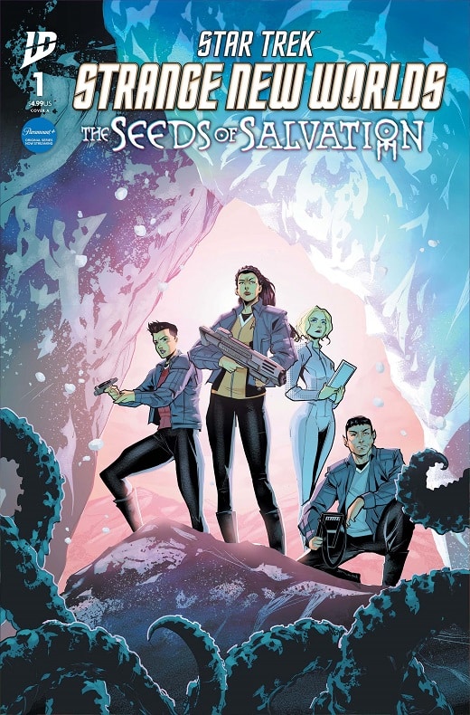 Star Trek: Strange New Worlds – The Seeds of Destruction takes Chapel, Una, La’An, Spock, and new robot sidekick, D6, on an adventure to an ice covered planet where scary secrets lurk. The five-issue series is written by Robbie Thompson and illustrated by Travis Mercer.