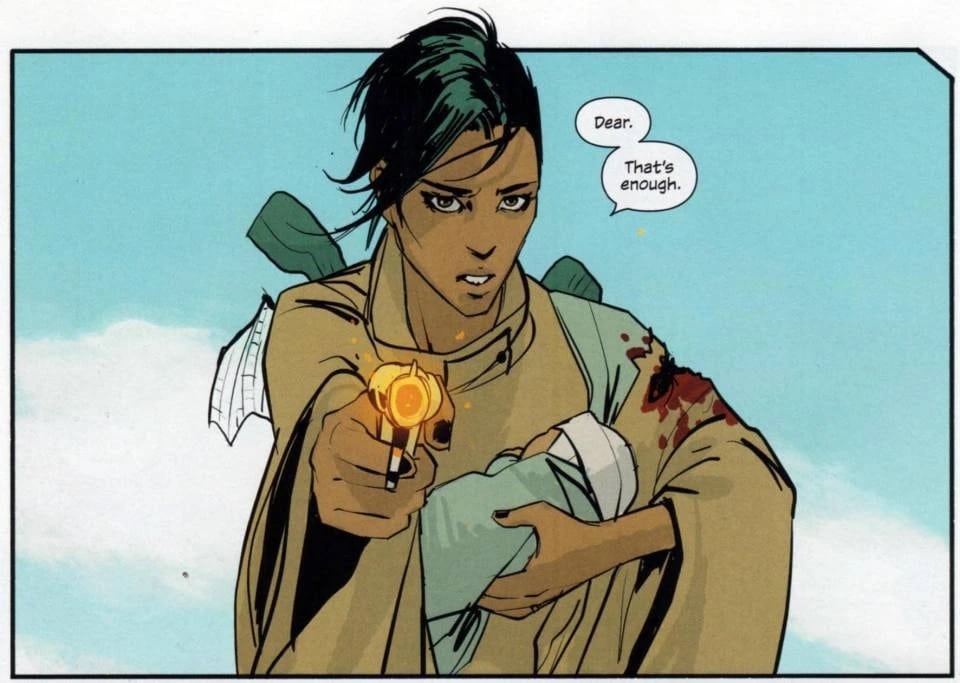 Alana is the heroine of the fantasy/space opera Saga, created by Brian K. Vaughan and Fiona Staples. She was a soldier who fell in love with a man from her enemy’s military, and then went on the run to protect her daughter, Hazel, from the intergalactic war.