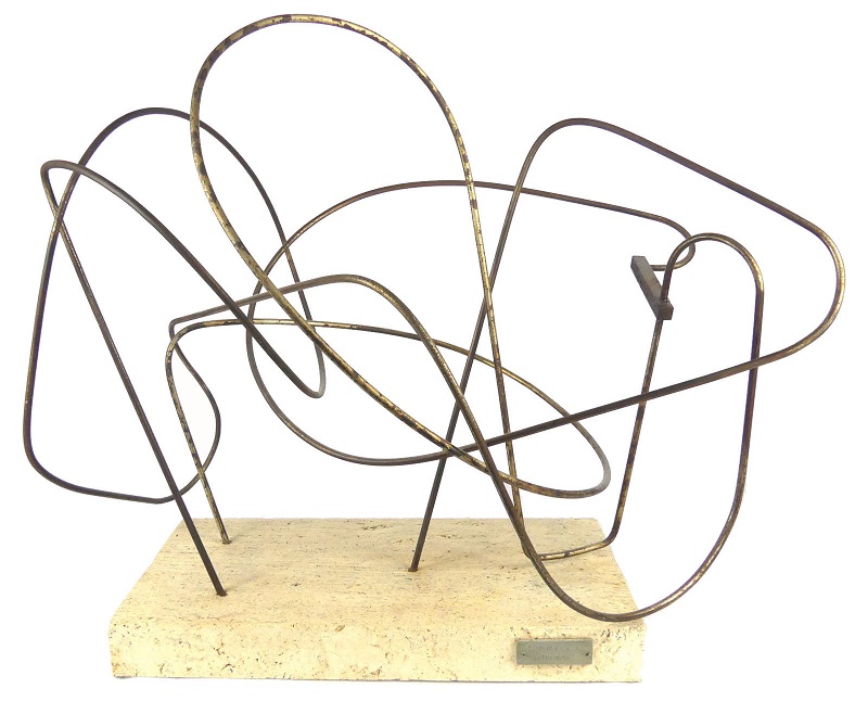 Cieckiewicz added there are also bronze, steel, and acrylic sculptures up for bid, all by notable artists. An example is lot 6, an iron freeform sculpture on a travertine stone base by Argentine sculptor Enio Iommi (1926-2013). The work, 26 inches long, is marked ‘Iommi’, dated 1949 and titled Continuidad to a plaque in front of the base. It has a pre-sale estimate of $6,000-$8,000.