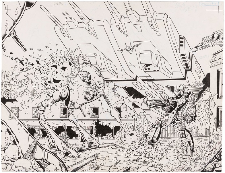 The Robotech: The Macross Saga #2 wraparound cover by Neil Vokes hammered for $8,260. The wraparound cover shows an action-packed scene of Roy Fokker’s VF-1S Valkyrie engaged in a firefight, destroying one of the Imperial Zentraedi Forces’ Battlepods.