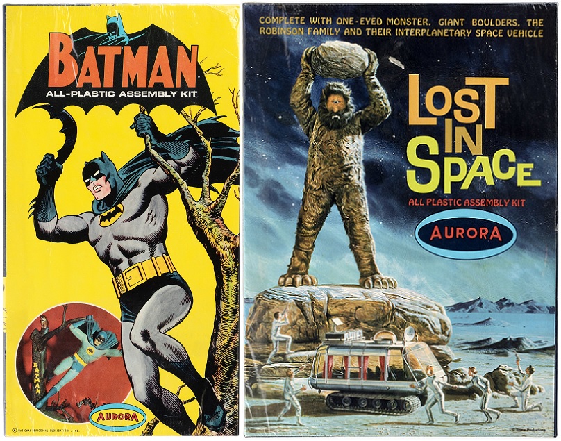 Aurora also made models based on characters from comics, movies, and TV shows. They capitalized on 1966 Batmania with a kit of Batman, the Batmobile, and other vehicles from the show. The comic character lines also included the Incredible Hulk, Captain America, Wonder Woman, Spider-Man, and Superman. For the TV and movie lines, they made model kits based on Star Trek, Voyage to the Bottom of the Sea, The Man from UNCLE, Lost in Space, and others.