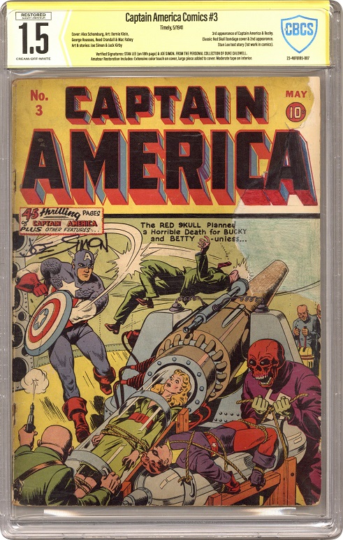 With the April Major Auction behind them, MyComicShop is now previewing some of the comics that are heading to their website soon. They include Batman #1 CGC 2.0 Restored, Captain America Comics #3 CBCS 1.5 Restored with verified signatures from Stan Lee and Joe Simon from the personal collection of Duke Caldwell, the first appearance of Doctor Doom in Fantastic Four #5 CGC 4.0, and House of Secrets #92 CGC 7.0 amongst many other great finds.