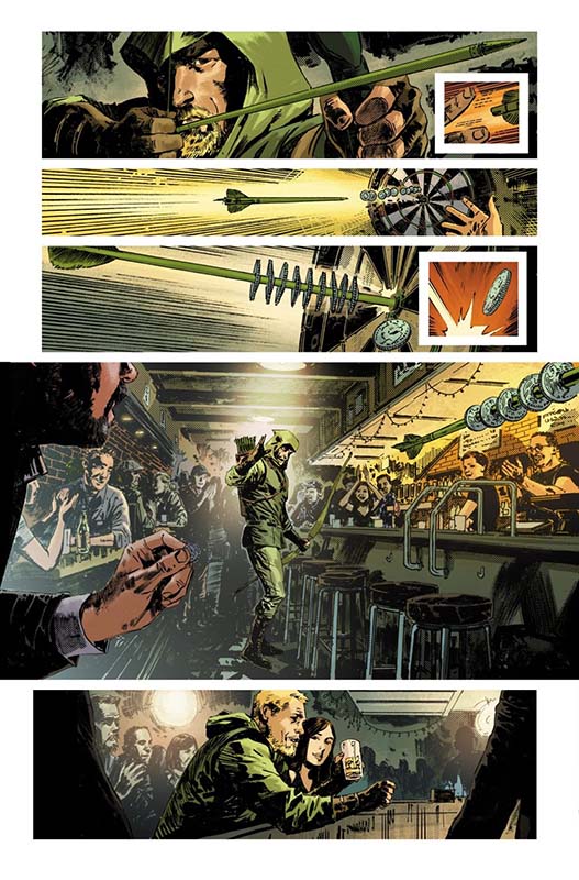 “In Arcadia, working from the decaying husk of Hub City, Vic Sage, the Question, goes deep undercover on the trail of a human trafficking operation in the frozen Arctic. Oliver Queen, the Green Arrow, pushed out of his own company’s C-suite, must get his crumbling life back together…but what is Queen Industries’ involvement with a mysterious project dubbed Arcadia? Spurred on by the Question, Green Arrow joins the hunt for answers…but one obstacle stands in the way of their investigation: the Batman,” per the description.