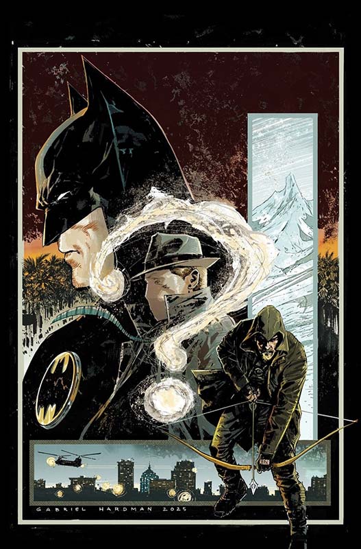 Three independent, ideological heroes will come together to battle a global crisis in Batman/Green Arrow/The Question: Arcadia. The four-issue miniseries from DC’s Black Label imprint is “a hardboiled modern twist on the DC thrillers of the 1980s.” Written and illustrated by Gabriel Hardman with colors by Romulo Fajardo Jr., it begins on November 26, 2025.