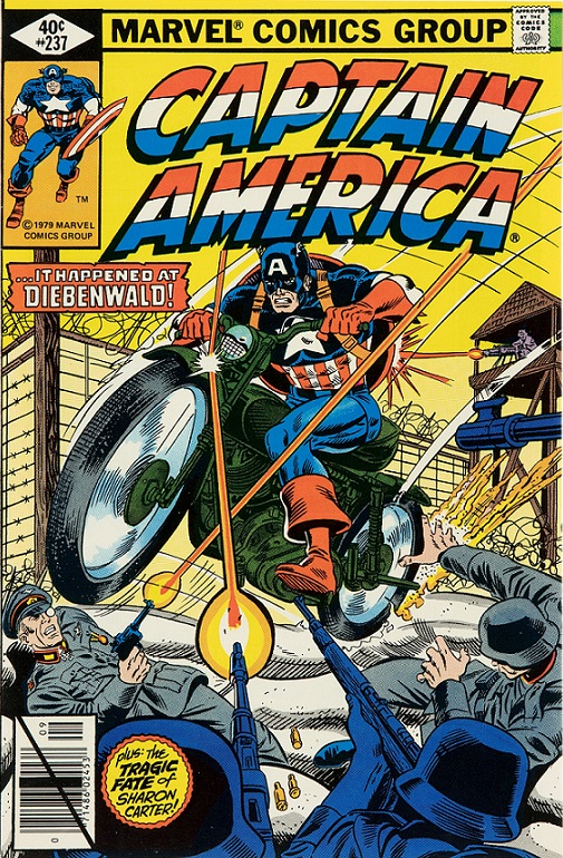 Cool factor: Cap liberating a concentration camp is certainly cool. And let’s also mention Sal Buscema here, too: The journeyman artist delivers some very nice storytelling in this issue, particularly the page where Cap learns of Sharon Carter’s “death.”
