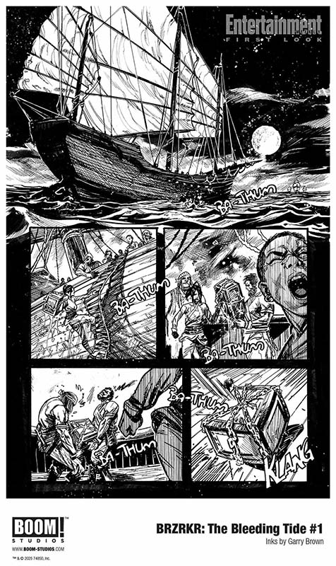 BRZRKR: The Bleeding Tide features a main cover by Brown, with variants by Giuseppe Camuncoli, Michael Dialynas, Rebeca Puebla, Khary Randolph, and others. It will arrive in comic shops on November 26, 2025.