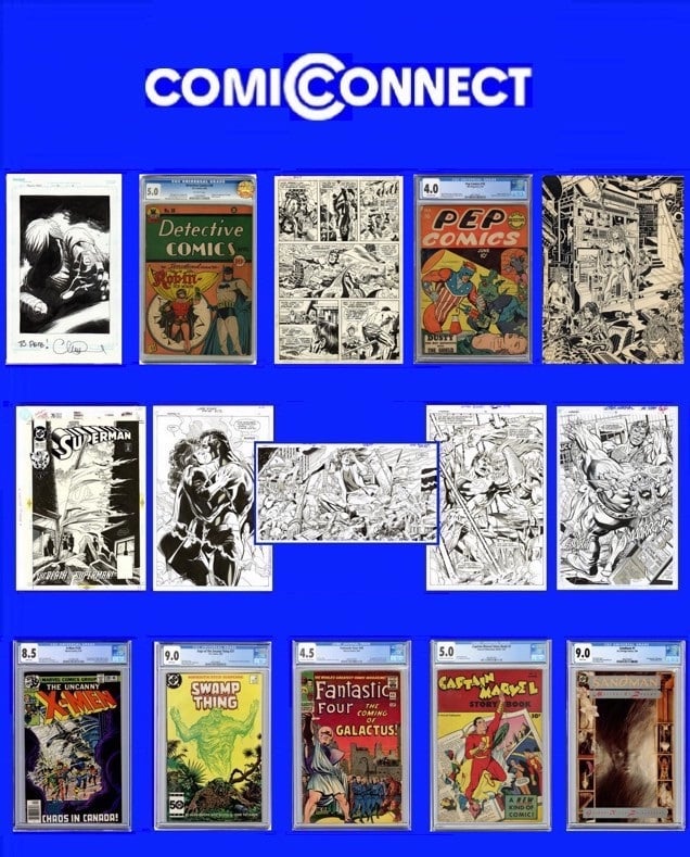 ComicConnect is always seeking out vintage comics, original art, and more. Clients who put consignments toward payments are offered what they describe as “competitive commission rates” and interest free cash advances. Original art consignors can reach out to Micah Spivak at micahs@metropoliscomics.com; and sellers can also contact Peter Barbella at peterb@metropoliscomics.com, or call (212) 260-4147 and toll free at (888) 779-7377.