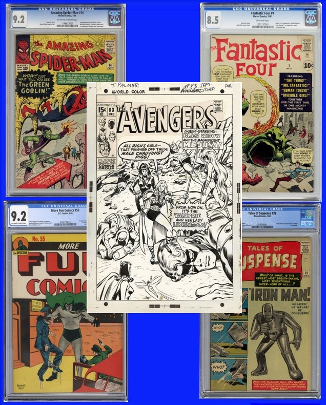 Additional highlights are Amazing Fantasy #15, a high grade selection of scarce Rocket Comics, and a Bronze Age run of X-Men 9.8 that begins with Giant-Size X-Men #1 and X-Men #94.