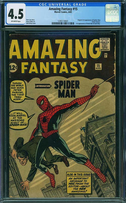 • Amazing Fantasy #15 (first Spider-Man and origin) CGC 4.5