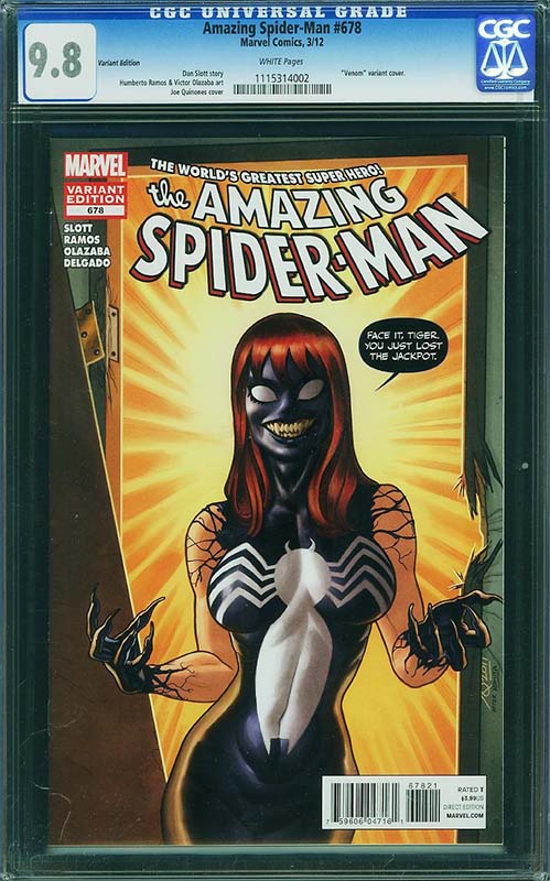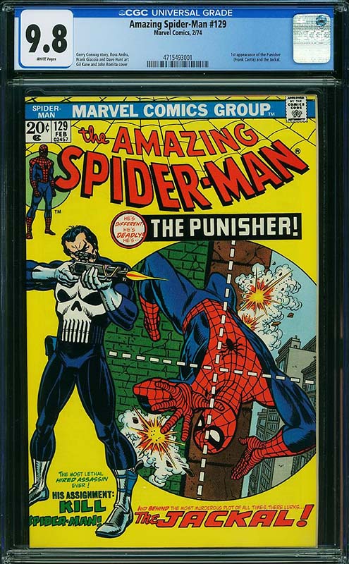 • Amazing Spider-Man #1 CGC 5.5, #14 (first Green Goblin) CGC 9.0, #129 (first Punisher) CGC 9.8 and CGC 9.6, and #678 CGC 9.8 Mary Jane as Venom variant