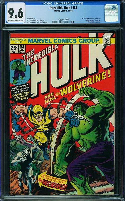 • Incredible Hulk #141 (first Doc Samson) CGC 9.8 and #181 (first full Wolverine) CGC 9.6
