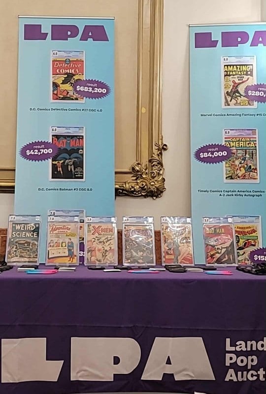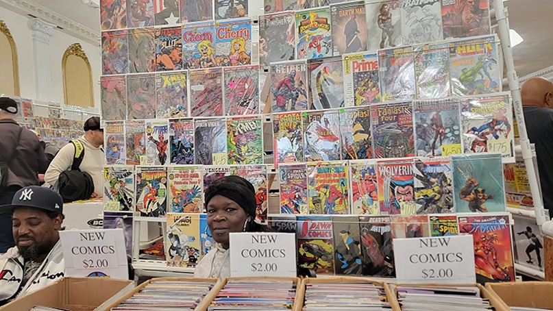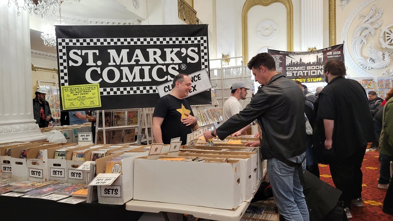 Original comic art was supplied by comic art dealers Nostalgic Investments with a beautiful selection of comic book art, and dealer Anthony’s Snyder Comic Book Art put on his usual gigantic display of both comic book art and vintage comics. The comic pressing service Spineworks offered comic pressing, grading, buying, and selling consignment services. The auction house Landry Pop Auctions was in attendance as well.