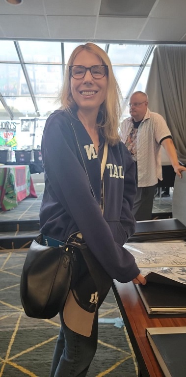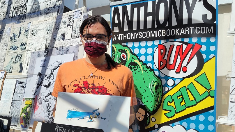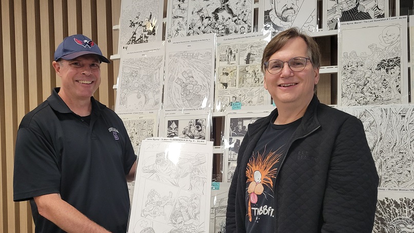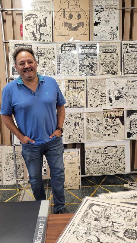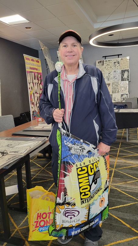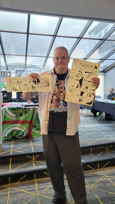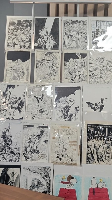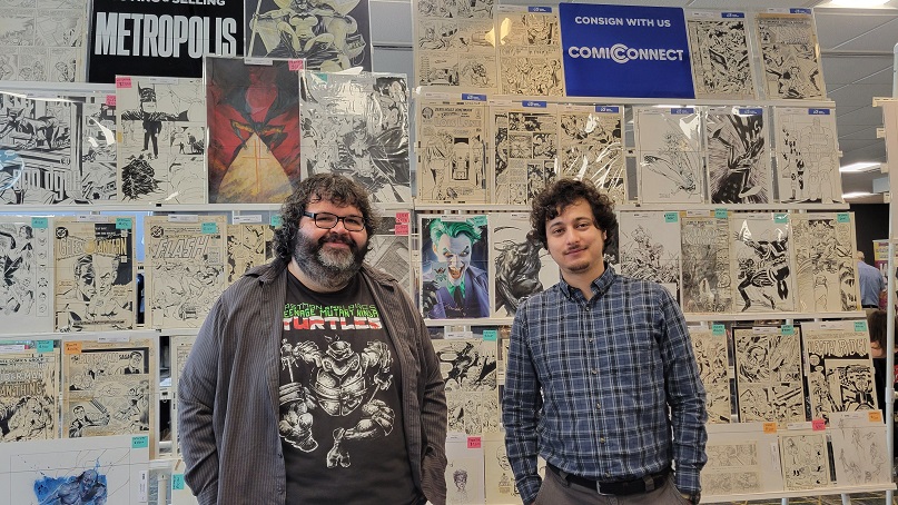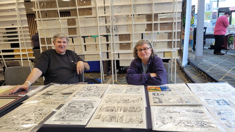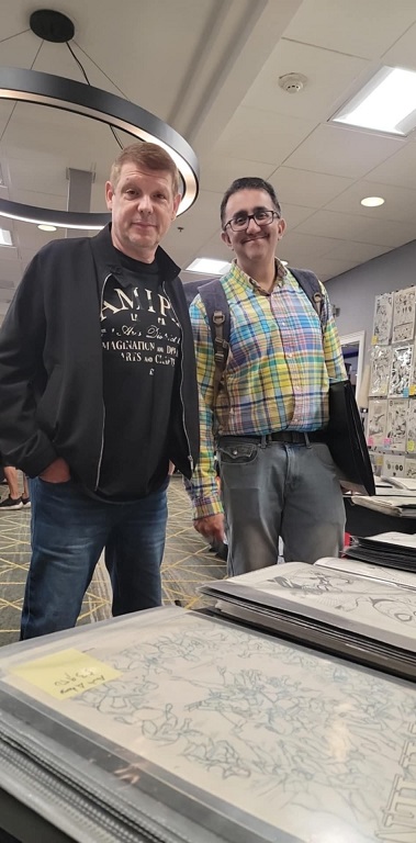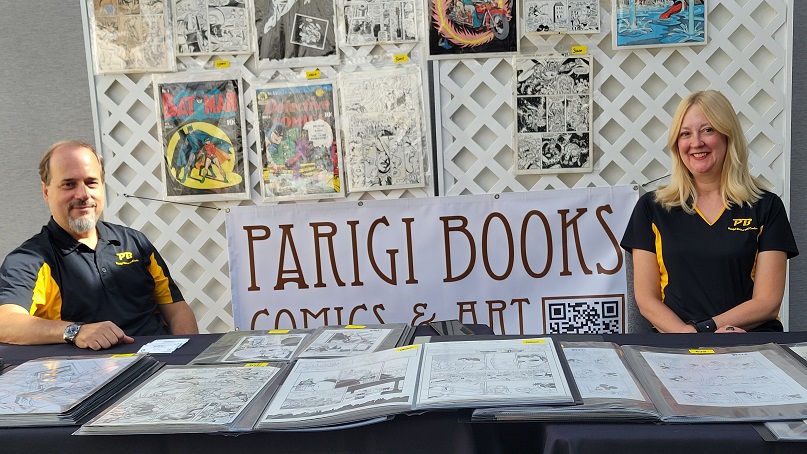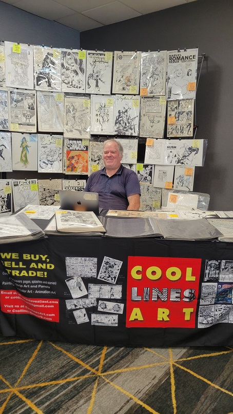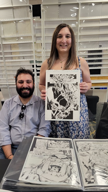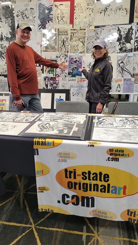 On the day before the show Allie and I held a pizza party at our house with some of the show’s dealers and collectors. There were some wide ranging discussions about the hobby. One of the topics that came up was how does the change from being a comic book collector to a come art collector come about? Comic art dealer Steve Donnelly said that in his case he never gave up comics but added comic art to what he collected and that while comic art dominates today he still is a fan of comics. The same was true for a collector at the party who still collects comics today but is also a dedicated comic art collector as well. That collector expressed love for being a part of comic fandom, saying it adds multiple layers to the collecting experience such as meeting new people and making friends. Dealer Rich Donnelly (Steve’s brother) talked about the concept of comic fandom and how being part of a collecting community provides many different opportunities such as networking, exchanging knowledge, and advice. It also helps with finding that one piece of art that a collector is looking for. As for Allie and I, we both collect comics and comic book art.