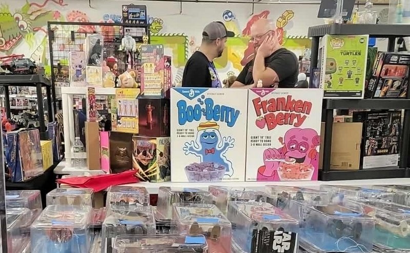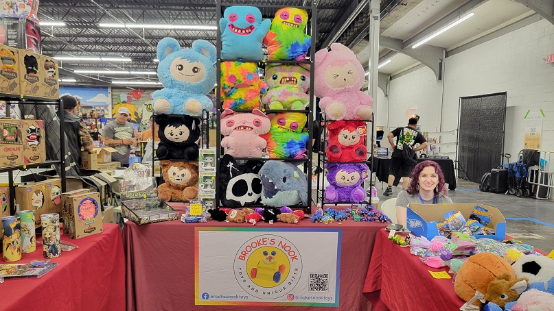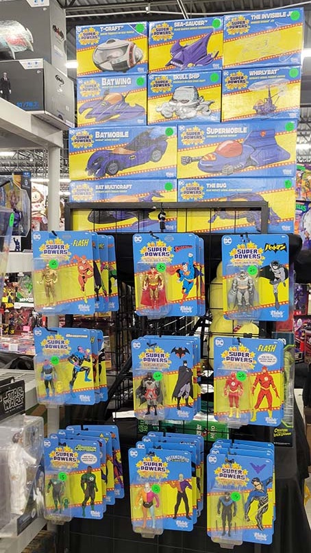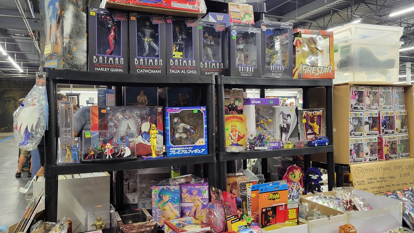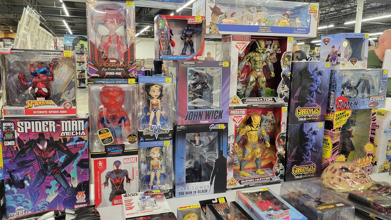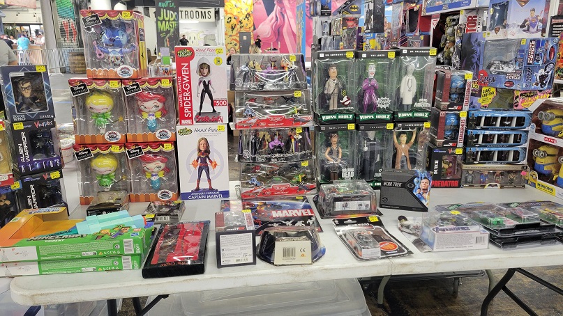 Walking the aisles, I came across Brook’s Nook. Brook Haramija is a longtime friend of ours, and we look forward to seeing her at shows. She sells all the hottest toys and coolest plushies for kids and adult collectors alike. Among her sales items were Fugglers, Labubus, Vampire Freaks, Labubus, Warmies, Punchkins, TabaSquishies, and more. My longtime friend Andrew Heller and I talked for a while about what we were looking for. One of the things that stood out for me was given the great success of the Superman movie this summer, I thought there would be a lot more Superman collectibles offered but there wasn’t. However there was a greater amount of Batman related items then usual at a ToyCon show and I was happy to see that. There also was a surprising amount of comic books offered with the majority of them Marvel. Also there was a lot of Labubus offered at dealer booths.
