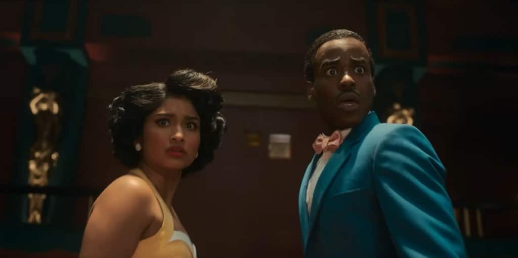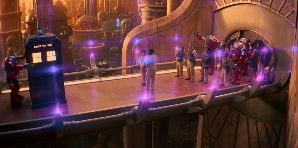 The trailer starts with the Doctor explaining who he is and where he’s from while meeting new companion Belinda Chandra (Varada Sethu) who was taken away from Earth. As they make their journey back to Earth, the pair will travel from 1952 to the 51st century. Along the way, they will watch the Interstellar Song Contest, get lost in time, and get turned into animated characters. The Doctor warns that reality is in danger, we see robots, monsters, giant spiders, and more, as the tagline reveals that “Getting back home will be a blast from the past.”