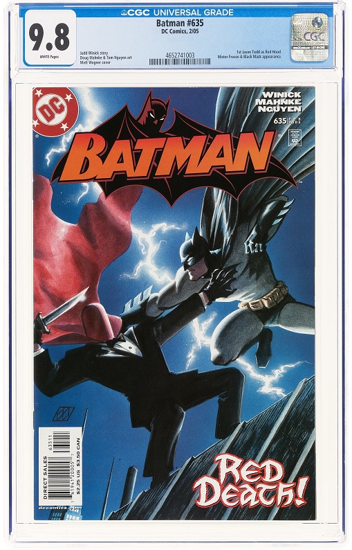 The comics sale includes X-Men #98 CGC 9.8, a festive season favorite in which the X-Men’s holiday shopping is interrupted by the Sentinels. Batman #635 CGC 9.8 contains Jason Todd’s first appearance as the Red Hood, starting with a painted cover by Matt Wagner.