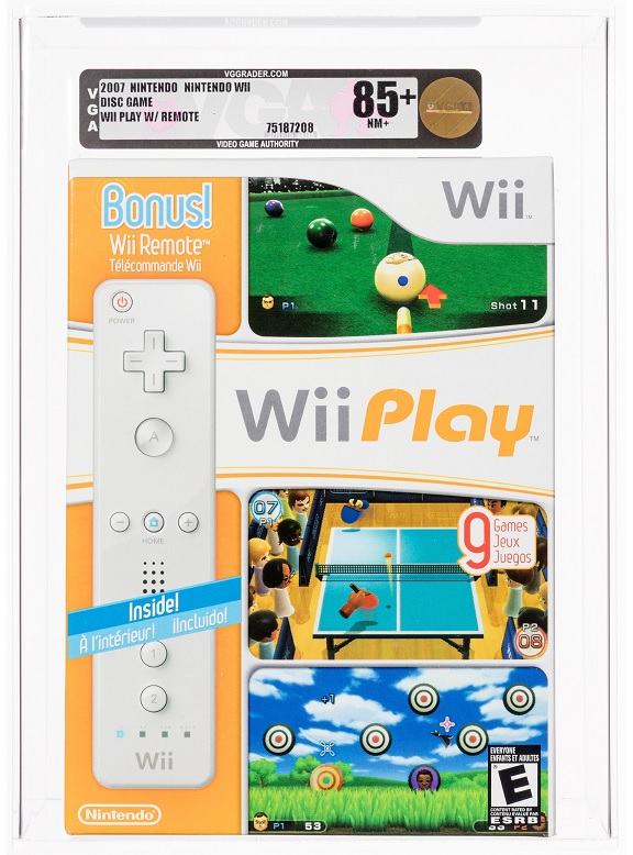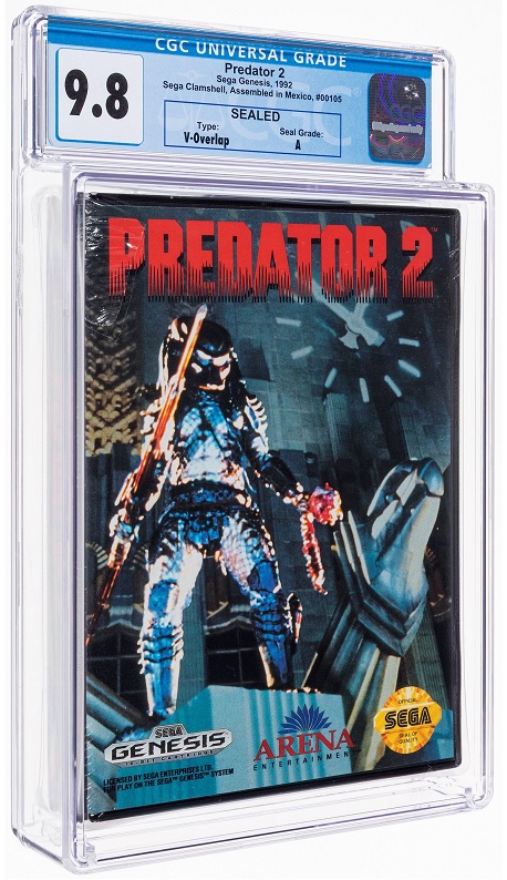 In the video game auction, Heritage has a Predator 2 CGC 9.8 sealed copy of the top-down shooter for Sega Genesis. Wii Play VGA 85 sealed with remote for Wii Nintendo is a party game designed to showcase the features of the Wii remote.