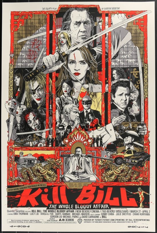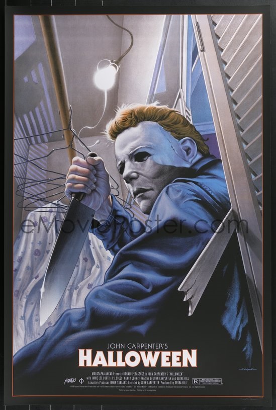 Mondo prints include Empire Strikes Back, Ghost in the Shell, Return of the Jedi, Guardians of the Galaxy, Star Wars, Alien, The Birds, Evil Dead, Kill Bill: The Whole Bloody Affair, Rear Window signed by Laurent Durieux, Scream, Mulholland Drive signed by Kevin Tong, Pulp Fiction, Halloween signed by Jason Edmiston, There Will Be Blood, Home Alone signed by DKNG, Game of Thrones, Jaws, Die Hard, Howl’s Moving Castle, The Thing, Shaun of the Dead, Return of the Living Dead, and The Shining.