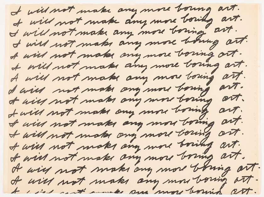 A rare and important lithograph by John Baldessari (CA, 1931-2020), I Will Not Make Any More Boring Art, printed 1971 by the Nova Scotia College of Art and Design, carries a $40,000-$60,000 estimate. In 1971, the Canadian college invited Baldessari to exhibit his work but did not have the funds to cover the artist’s travel expenses. In a brilliant move, Baldessari proposed that the art students act as his surrogates and write “I will not make any more boring art” on the gallery walls for the duration of the exhibition. The message expressed the artist’s dissatisfaction with the limitations of traditional painting and the system of art education at the time. Baldessari also sent a signed, handwritten page of the same phrase, from which the students produced 50 prints and a single documented proof.