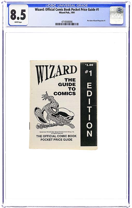 The beginnings of the 1990s collector craze are encapsulated in Wizard’s Pocket Price Guide CGC 8.5. This pamphlet was mailed out to retailers by publisher Gareb Shamus ahead of the publication of Wizard: The Comics Magazine #1 to help him get an idea of how accurate his pricing was as it would eventually lay the groundwork for Wizard’s regular pricing feature.