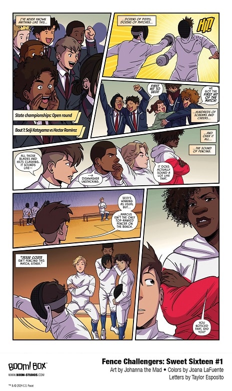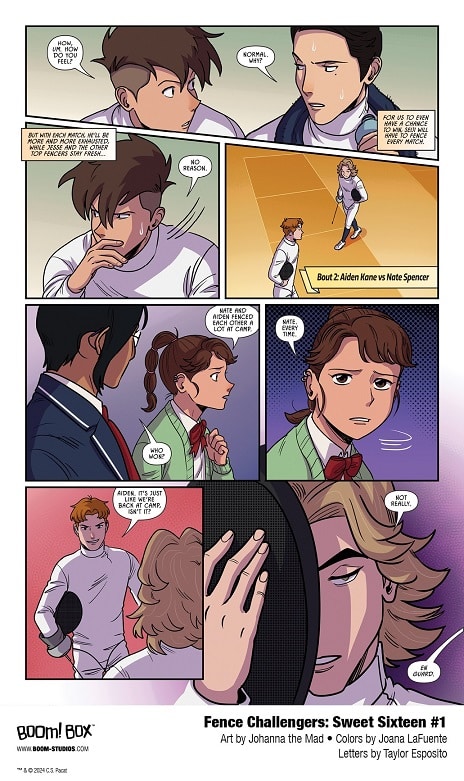 The competitive, high stakes world of fencing is ready for a new duel. BOOM! Studios has provided a first look at Fence Challengers: Sweet Sixteen #1, the double-sized one-shot by writer C.S. Pacat, artist Johanna the Mad, and colorist Joana LaFuente.