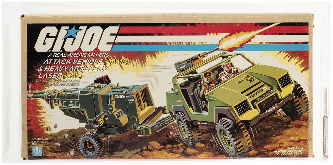 Leading the charge for G.I. Joe is the Attack Vehicle & Heavy Artillery Laser Series 3 vehicle AFA 75. This Sears exclusive two-pack from Hasbro is very hard to find in factory sealed condition. In fact, it is one of just six examples graded by AFA.