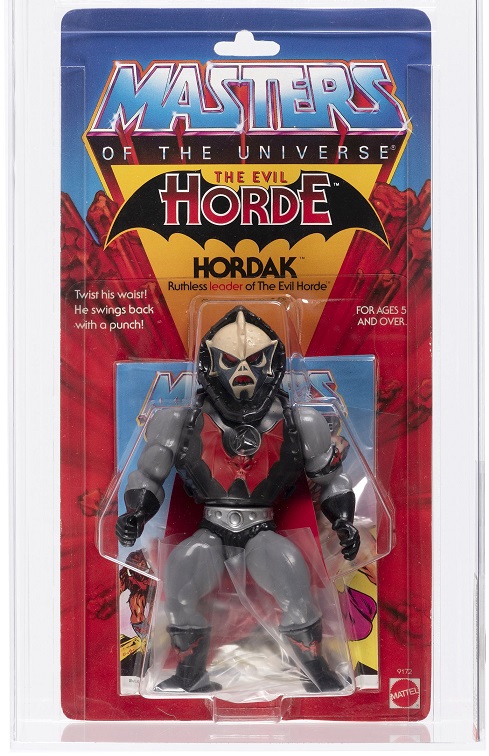 Masters of the Universe lots include several impressive figures like the Hordak Series 4/Evil Horde AFA 85. This is the tan face variety and comes with the Hordak: The Ruthless Leader’s Revenge! mini comic. It is one of five examples graded AFA 85 with none higher.