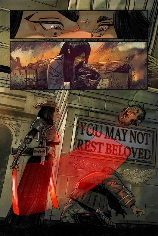 “Taking place before she became the sword-wielding cyborg assassin, this is an action-packed and badass story in the style of a revenge western, in which an innocent woman finds herself in the path of Imperium soldiers who slaughter her family…” per the description.