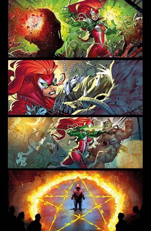 Jessica Priest is leading the superhero team in The Scorched series, which is on the cusp of its 50th issue. The She-Spawn miniseries is a standalone story that will follow her existing history, offering “a deeper look at her current state of mind rather than tying directly to a specific event or crossover.” Power, consequences, and moral ambiguity are among the themes in the book, as is Jessica being a human figure living in a supernatural world.