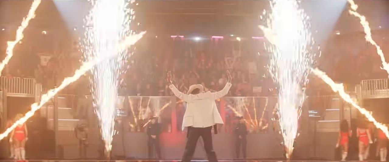 First we meet Ben (Glen Powell), a husband and father living in the slums with a child who needs medical assistance that they can’t afford. That’s when Dan Killian (Josh Brolin) presents him with an offer to be a contestant in the popular life and death game of The Running Man. The game is introduced through the juxtaposition of people being chased and killed, and shots of the audience watching in an excited frenzy while host Bobby Thompson (Colman Domingo), shots that “Bloodlust is our birthright.”