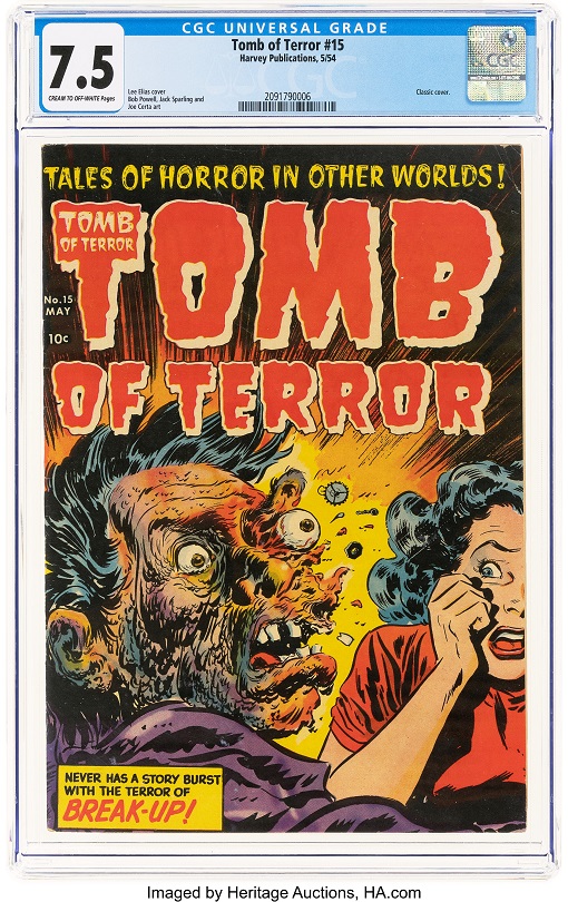 Some highlights are Tomb of Terror #15 CGC 7.5, Roly Poly Comic Book #14 CGC 3.5, Punch Comics #9 CGC 4.5, Weird Tales #53 CGC 5.0, Lawbreakers Suspense Stories #11 CGC 7.0, Mister Mystery #6 CGC 5.0, The Black Terror #7 (Davis Crippen “D” copy) CGC 8.0, and Brenda Starr #14 (#2) CGC 6.0.