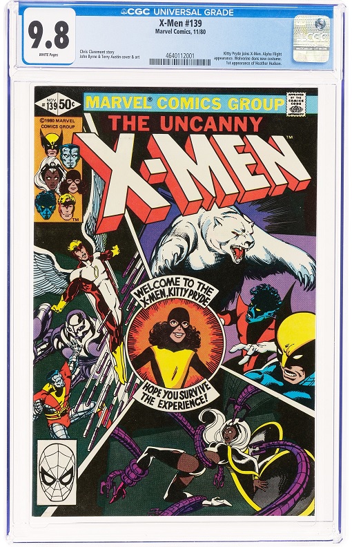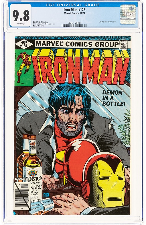 A pair of Marvel keys are leading the comic book auction, starting with Iron Man #128 CGC 9.8 with the “Demon in a Bottle” cover showing Tony Stark wrestling with alcoholism. X-Men #139 CGC 9.8 sees Kitty Pryde joining the team and contains the first appearances of Wolverine’s brown costume and Alpha Flight’s Heather Hudson.