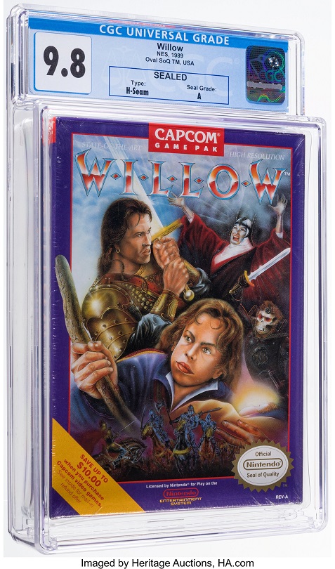 The video game auction kicks off with Indiana Jones and the Infernal Machine WATA 9.4 sealed for Game Boy Color, which is a portable adaptation of the N64 and PC action-adventure game. The high grade video game adaptation of Willow CGC 9.8 sealed for NES was developed by Akira Kitamura (creator of Mega Man) and comes from the Joyner Collection.