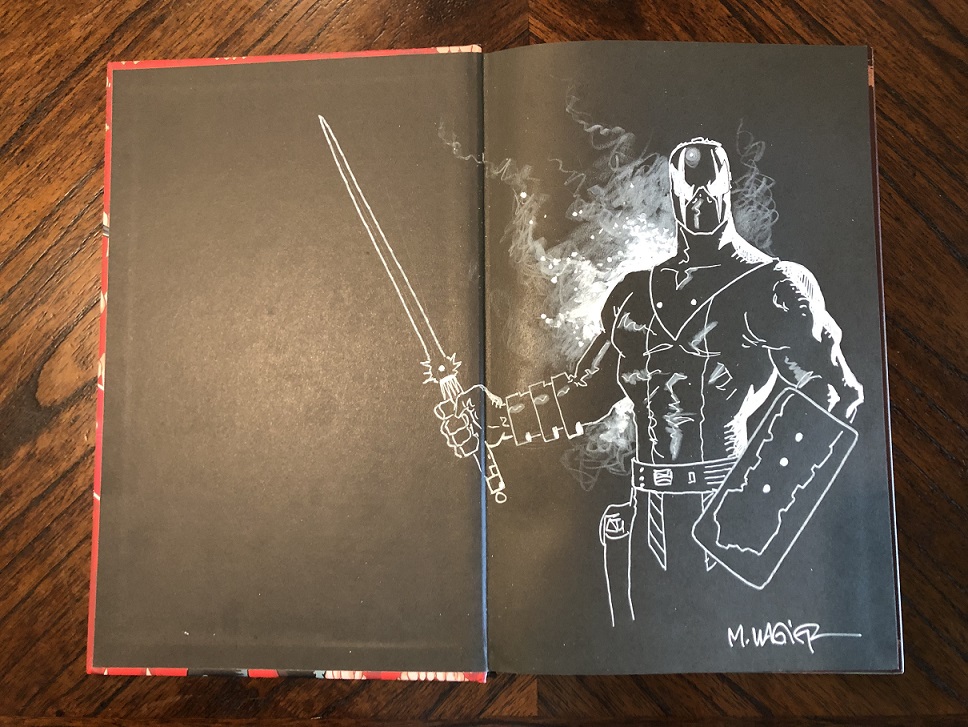 The Hero Initiative is continuing to offer original comic art pages by Howard Chaykin on eBay. The latest group includes Satellite Sam #6 page 16, Avengers 1959 #3 and #5 pages, War is Hell: Phantom Eagle #3 page 13, Buck Rogers #1 page 5, and Black Kiss: XXXMas in July #1 page 11. Another new listing this week is Matt Wagner’s Grendel: Devil’s Crucible Defiance hardcover with two-page drawing.