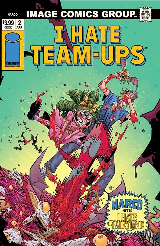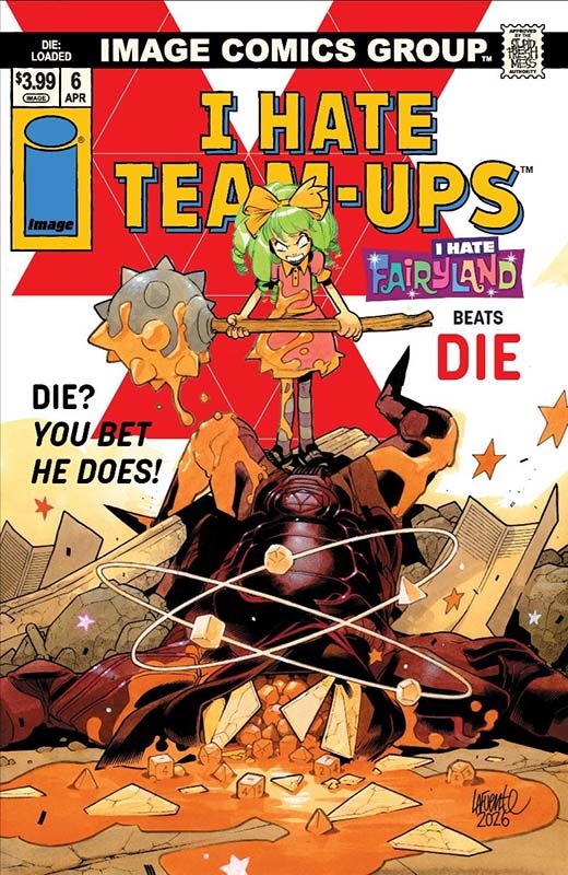 In honor of I Hate Fairyland’s milestone 50th issue, Image Comics has announced a month of crossover variant covers. Gert and her cohorts from Skottie Young’s I Hate Fairyland are following in the footsteps of Spawn, Youngblood, and Invincible with their own “I Hate Team-Ups” covers in April 2026.