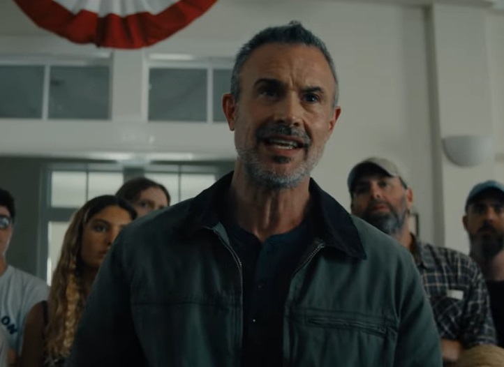 A town meeting is called to discuss the situation where original film survivor Ray Bronson (Freddie Prinze Jr.) confronts town officials about the danger they are in. Several shots of the Fisherman stalking his prey follows until one of his targets reaches out to franchise final girl Julie James (Jennifer Love Hewitt) to ask for help. Looking troubled, Julie responds, “I just have one question – what did you do last summer?”