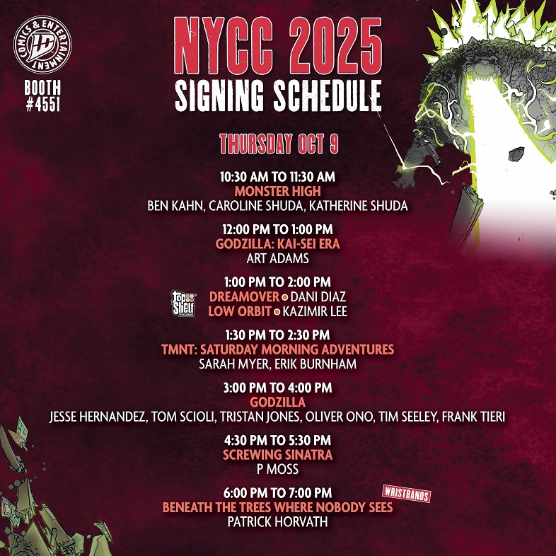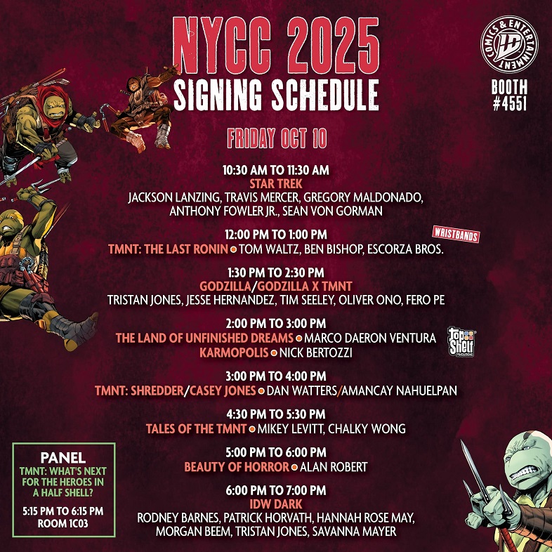 IDW Publishing is heading to New York Comic Con on October 9-12, 2025, with a slate of exclusives, over two dozen signings, and panels. They will be located at booth #4551 at the Javits Center.