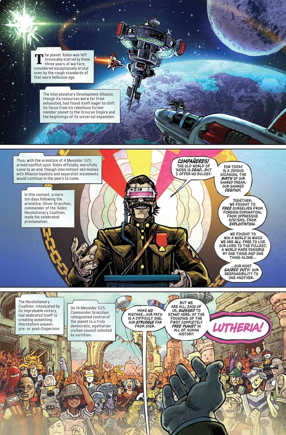 The story of a free society mottled by separatists, revolutionaries, intergalactic threats, and more will unfold in Free Planet Vol. 1. The graphic novel by Aubrey Sitterson (No One Left to Fight) and artist Jed Dougherty (Savage Heart) will be released in November 2025 from Image Comics.