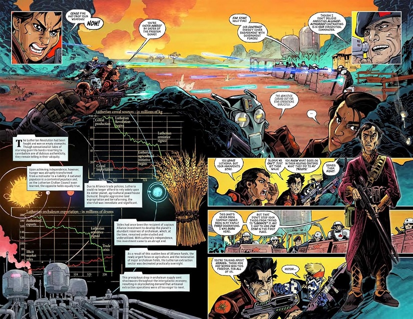 Free Planet explores political themes that mirror some of today’s issues, as well as societal structure, separatist movements, counterrevolutionaries, and a trade war. In their description, Image compared it to series like Dune and East of West.