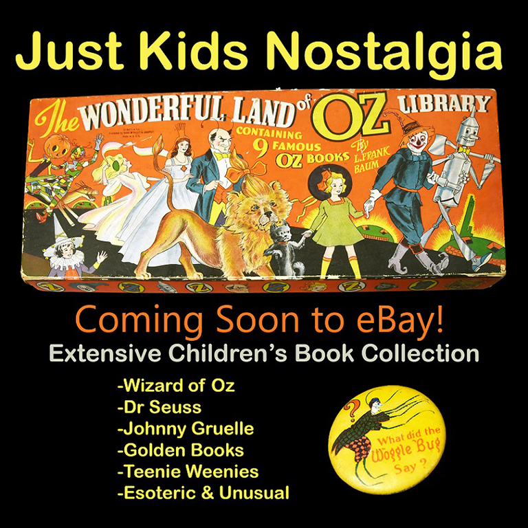 Once that auction closes, Just Kids Nostalgia will sell a children’s illustrated book collection featuring books from the early 1900s to the 1960s. It includes an extensive first printing group of Golden Books, Dr. Seuss books, rare Wizard of Oz, Teenie Weenies and other obscure characters, pop-up books, Johnny Gruelle Raggedy Ann editions, and more.