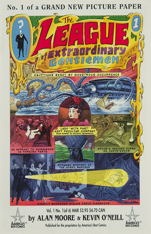 Moore and artist Kevin O’Neill co-created The League of Extraordinary Gentlemen, a story set in the late 1800s that starred Victorian Age public domain characters created by Bram Stoker, H. Rider Haggard, Jules Verne, Robert Louis Stevenson, H.G. Wells, Sir Arthur Conan Doyle, and Sax Rohmer.