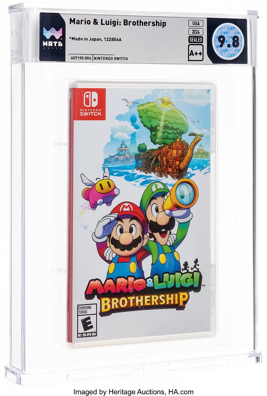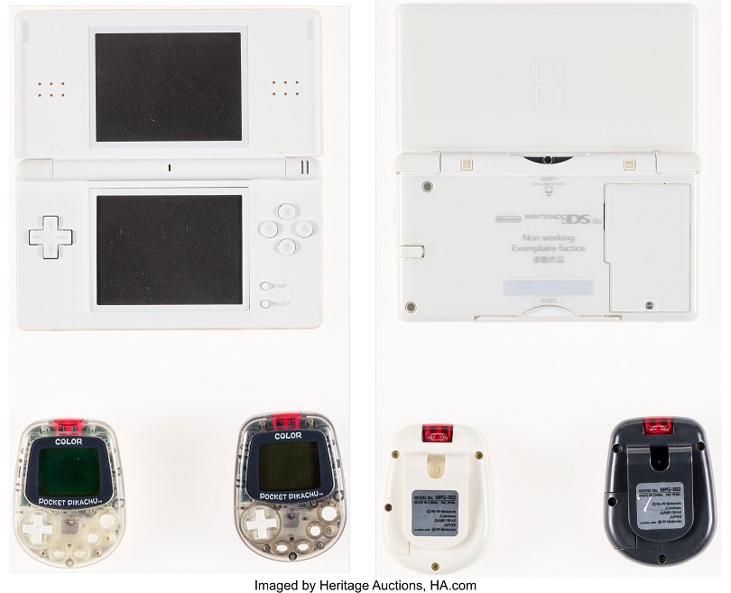The video games auction features a group lot of 9 “not for resale” loose cartridges for Nintendo DS, a DS Lite demo unit, and two Color Pocket Pikachu Pedometers. They are also offering a high grade, factory sealed copy of Mario & Luigi: Brothership WATA 9.8 sealed for the Nintendo Switch.