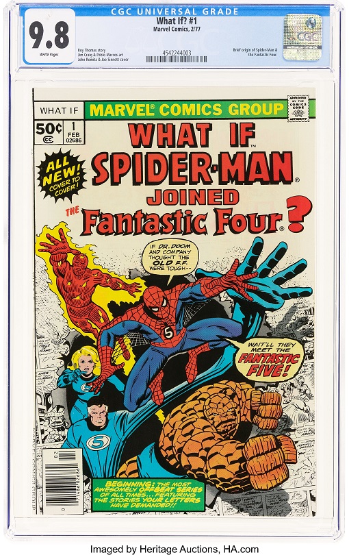 In the comic auction, Heritage is offering Marvel Super-Heroes #12 CGC 9.8 marking the debut of the original Kree Captain Marvel/Mar-Vell. What If? #1 CGC 9.8 posits the great question: what if Spider-Man joined the Fantastic Four?