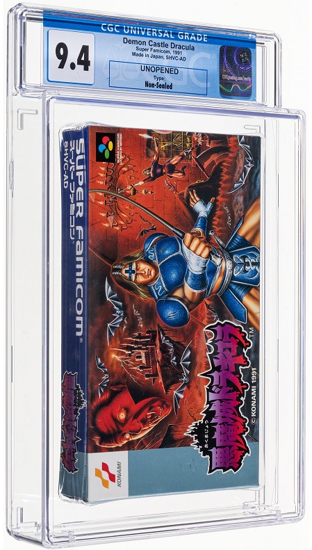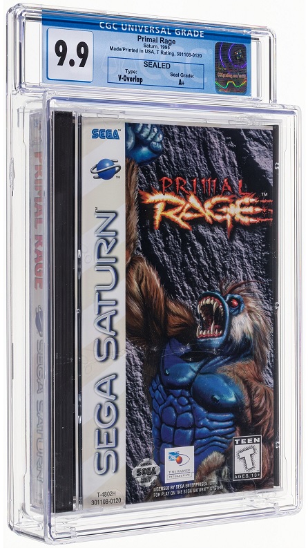 The video game auction showcases Demon Castle Dracula CGC 9.4 unopened for Super Famicom Konami, which is considered among the finest in Konami’s series. Primal Rage CGC 9.9 sealed for Sega Saturn featuring dinosaurs and giant apes in a fighting game akin to Street Fighter.