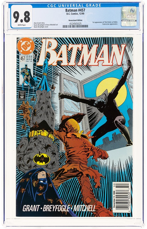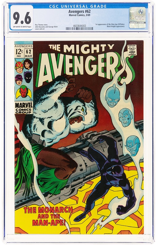 In the comic auction, Heritage is offering The Avengers #62 CGC 9.6 with the debut of M’Baku, one of Black Panther’s major foes. Batman #457 newsstand edition CGC 9.8 has the first full appearance of Tim Drake in costume as the new Robin (following Jason Todd’s death).