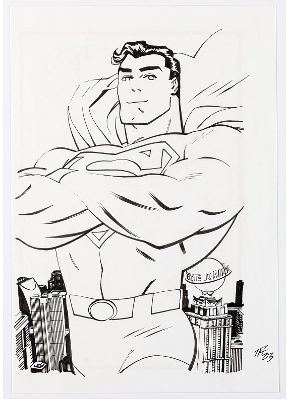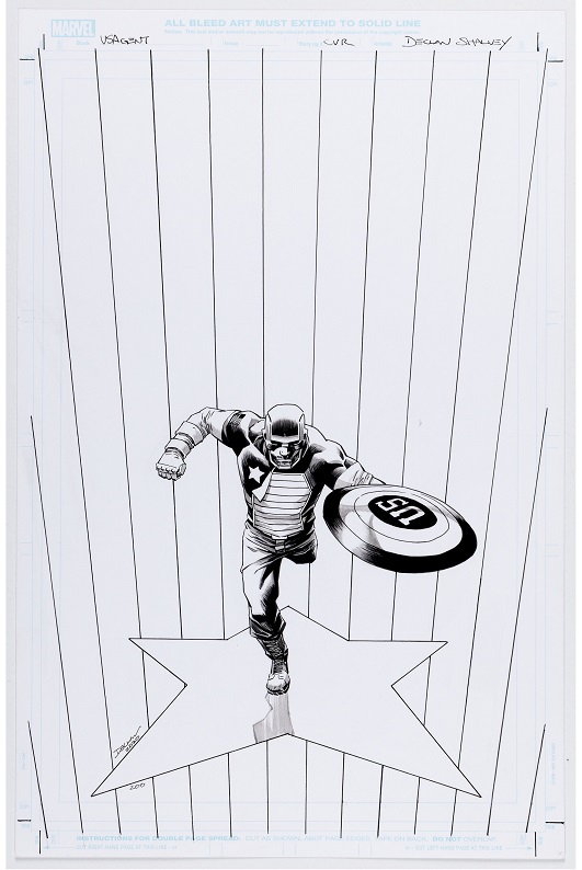The original art auction is led by Tom Reilly’s Action Comics #1063 Superman variant cover that captures the hero hovering over Metropolis with the Daily Planet building behind him. Declan Shalvey’s U.S.Agent #1 variant cover spotlights sometime hero/sometime antagonist John Walker running toward the action.