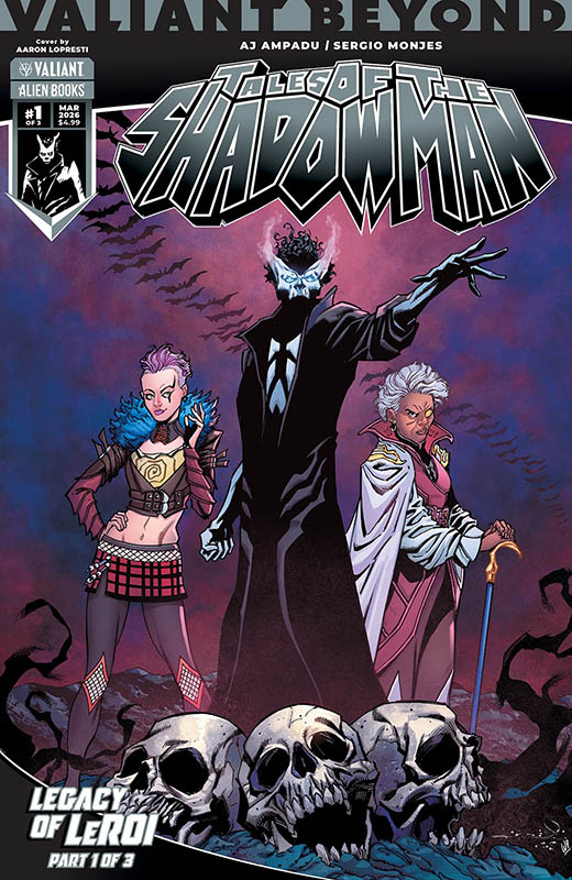 Tales of the Shadowman #7 “Legacy of Leroi” part one features covers by Aaron Lopresti and Federico Mele. It arrives in comic shops in March 2026.