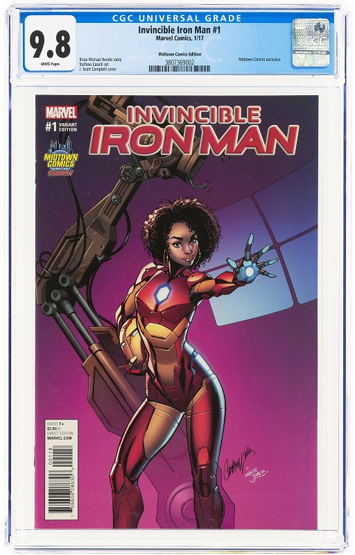 The comic auction features All-Star Superman #1 CGC 9.4 Signature Series Frank Quitely, which marks the beginning of Grant Morrison and Quitely’s take on the Man of Steel. Invincible Iron Man #1 Midtown Comics Edition CGC 9.8 featuring the first full-length headlining role for Riri Williams as Ironheart.