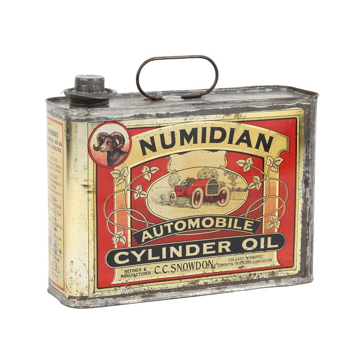 The September 13 morning session will be led by a pair of items with $12,000-$15,000 estimates. One is a circa 1920s Canadian two-sided lithographed tin from around the 1920s for C.C. Snowden Numidian Automobile Cylinder Oil, with an image believed to be a race car from the 1911 Indy 500. The tin, thought to contain 1 Imperial gallon, was made by The Thomas Davidson Mfg. Co., Montreal. It measures 8-3/4 inches by 10-3/4 inches. Side A is graded 8.25. Side B is graded 8.75.
