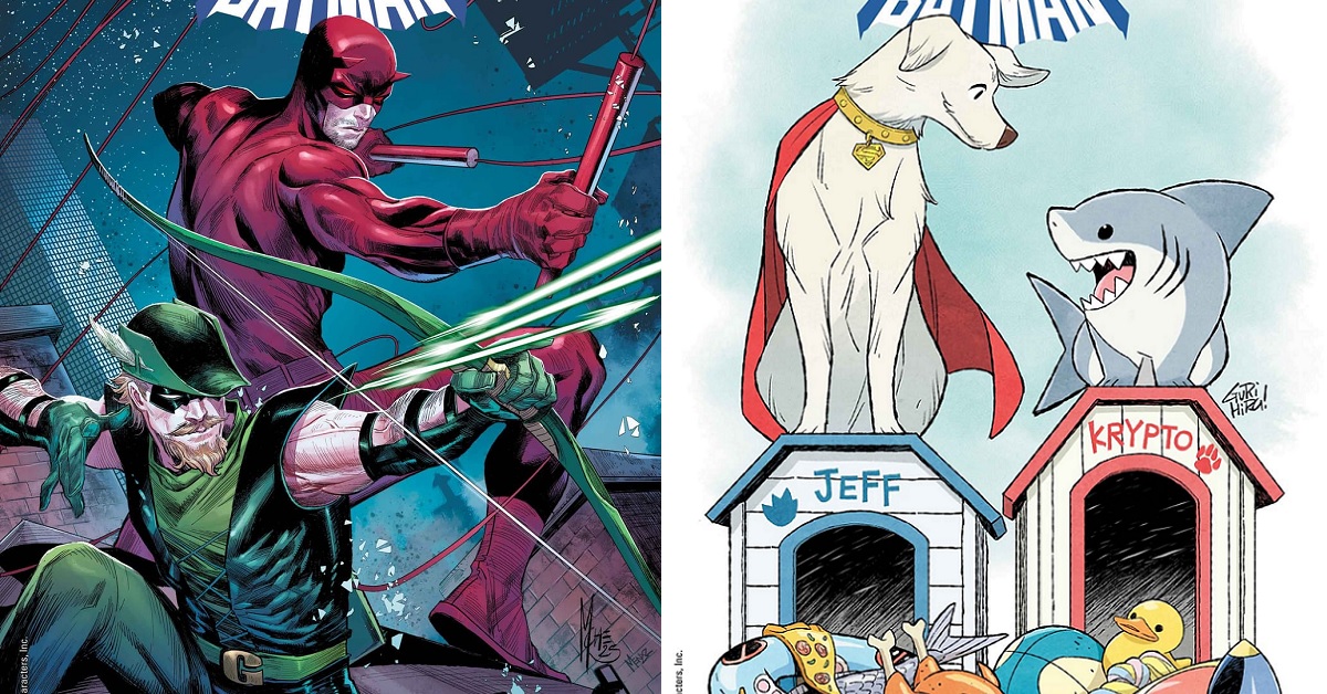 Each of the backup stories will also get their own cover on Deadpool/Batman #1. Daredevil artist Marco Checchetto has provided the Daredevil/Green Arrow cover and Gurihiru has created the Jeff the Land Shark/Krypto cover. The Wonder Woman/Captain America cover and its creator has not been announced. A wraparound variant cover by Capullo depicting the issue’s two stars has also been revealed.